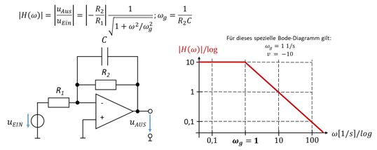 Ein aktives Tiefpass-Filter weist folgende Struktur und Übertragungsfunktion auf: