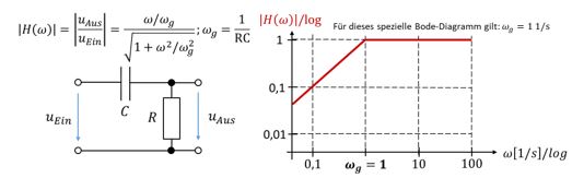 Ein passives Hochpassfilter aus Widerstand und Kondensator weist folgende Struktur und Übertragungsfunktion auf: