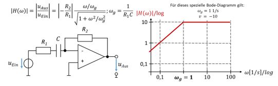 Ein aktives Hochpass-Filter weist folgende Struktur und Übertragungsfunktion auf: